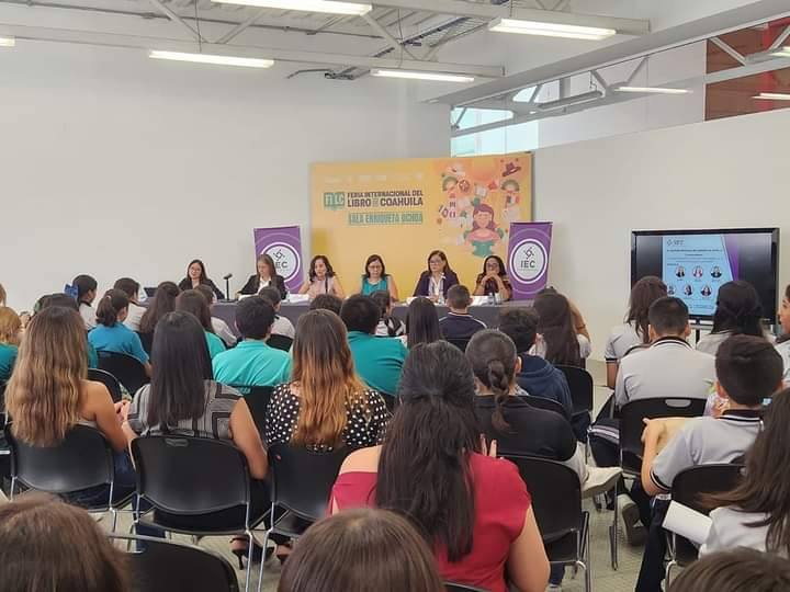 Presentación del libro del Instituto Electoral de Coahuila ‘Participación política de las mujeres: avances y obstáculos’, en la Feria Internacional del Libro Coahuila 2024, con la participación de la coordinadora de la obra, Georgina Cárdenas Acosta; y las y los autores, la Consejera Electoral Leticia Bravo Ostos; los Consejeros Electorales Juan Antonio Silva Espinoza y Óscar Daniel Rodríguez Fuentes; y Rosario Varela, (subdirectora de investigación) integrante no permanente del Observatorio de Participación Política de las Mujeres en Coahuila.